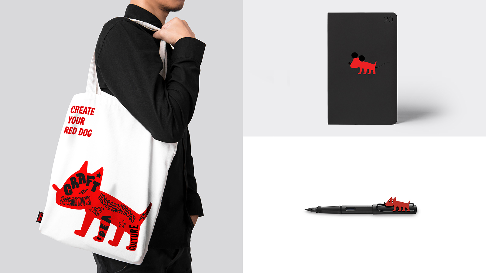 The words 'Red dog', 'Culture', 'House' were the keywords which we utilized to develop the brand concept and image. Red Dog is an effective symbol to represent the brand as an intuitive and strong motif. For Culture (subculture)' which represents the brand concept and core values, we played with an unconstrained expression of character, not a formulaic shape, to express the image of subculture. House represents the collection of stories that gather all these remarkable artists together, and is the place where each artist can bring their own ideas and drawings to life.